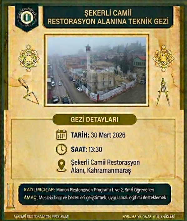 Gezinin Kapsamı: Söz konusu teknik gezi kapsamında, restorasyon süreçleri, malzeme analizleri ve koruma teknikleri uzman eşliğinde yerinde gözlemlenecektir. Geziye programımızın 1. ve 2. sınıf öğrencileri katılım sağlayacaktır.