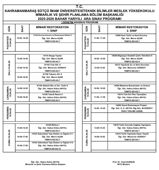 2025-2026 Bahar Yarıyılı Vize Sınav Takvimi